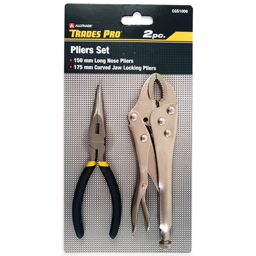 2pc Pack 150mm/6″ Long Nose Plier & 175mm/7″ Curved Jaw Locking Plier