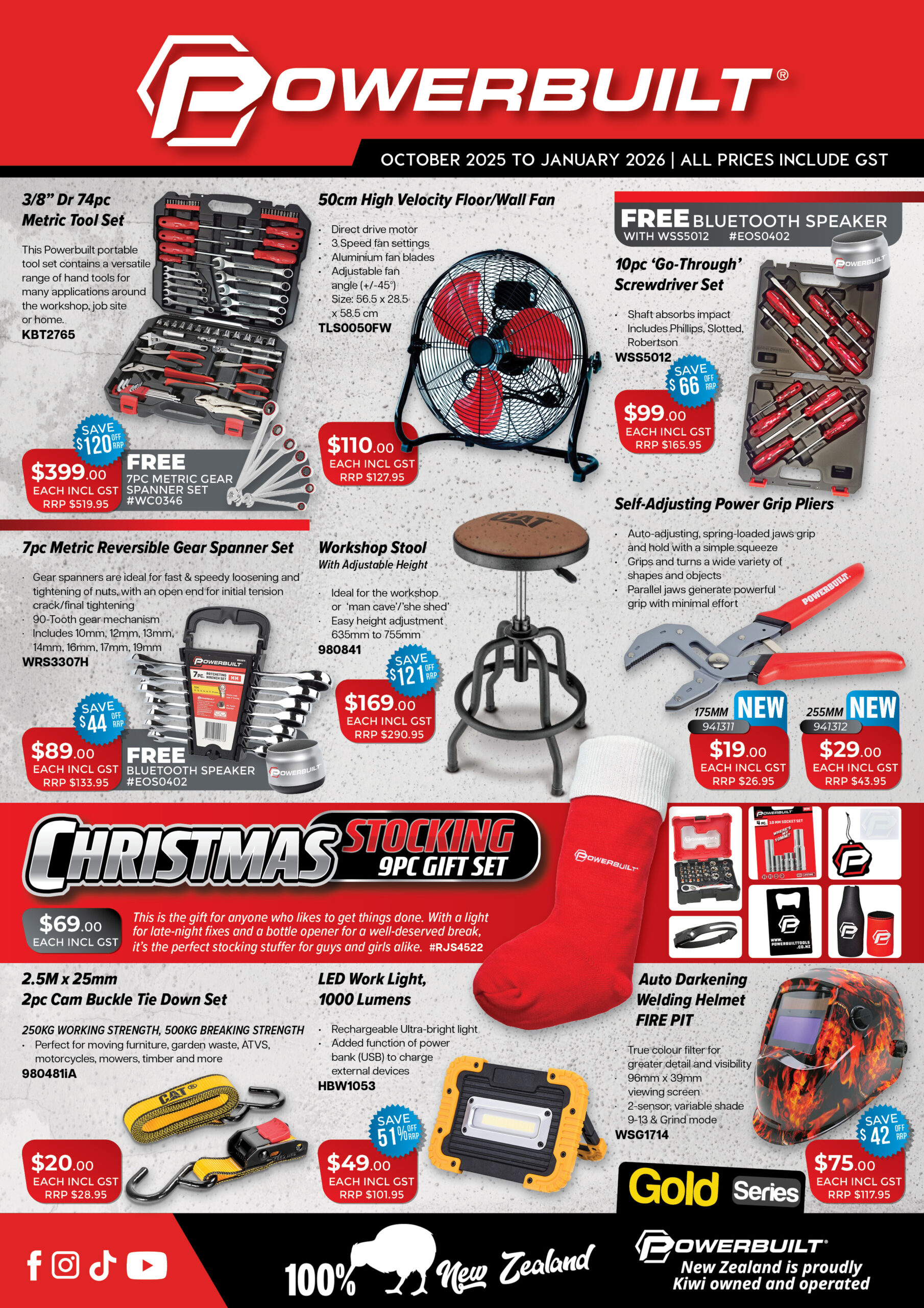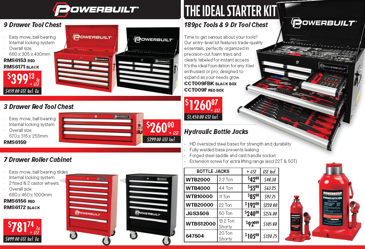 These are our current promotions with various Powerbuilt re-sellers across New Zealand.